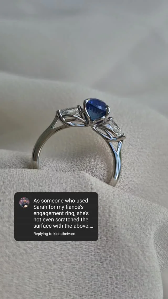From when we first made contact to when we picked up the (beautiful) finished rings, Sarah has been amazing; great communication, a brilliant way of extracting your ideas and making them a reality and an obvious passion when it comes to producing personal and quality jewellery. Very highly recommend and we plan on getting our wedding bands made by her in the near future.